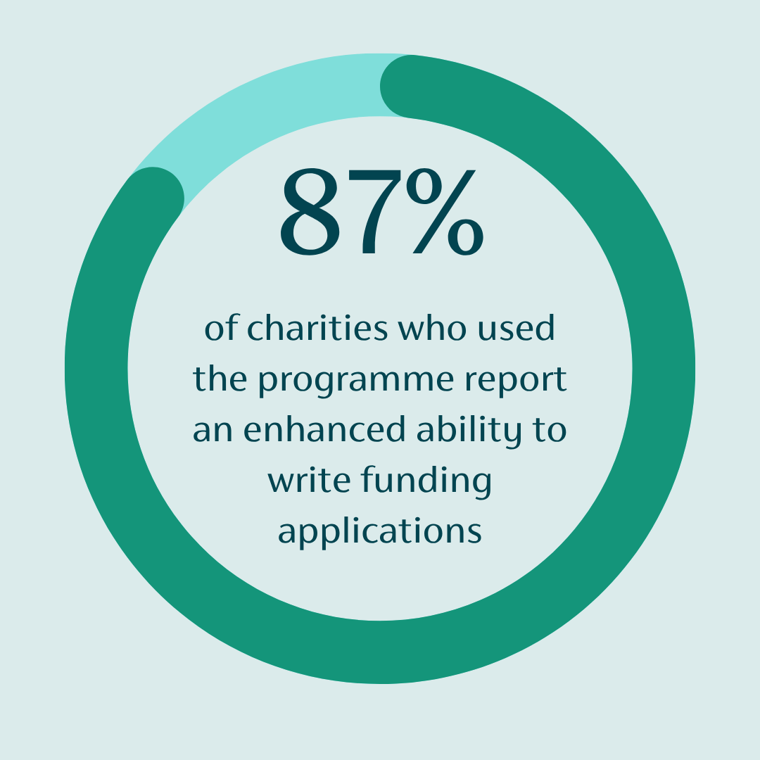 - 87% of charities who used the programme report an enhanced ability to write funding applications